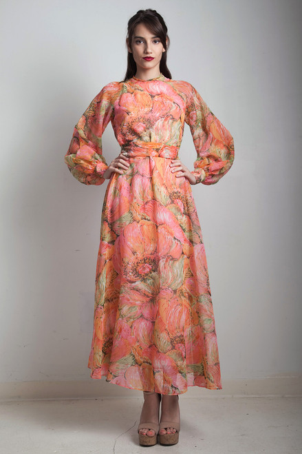 - vintage 70s puff sleeve maxi dress MEDIUM M