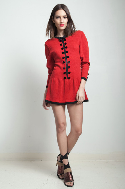 - red knit with black trims