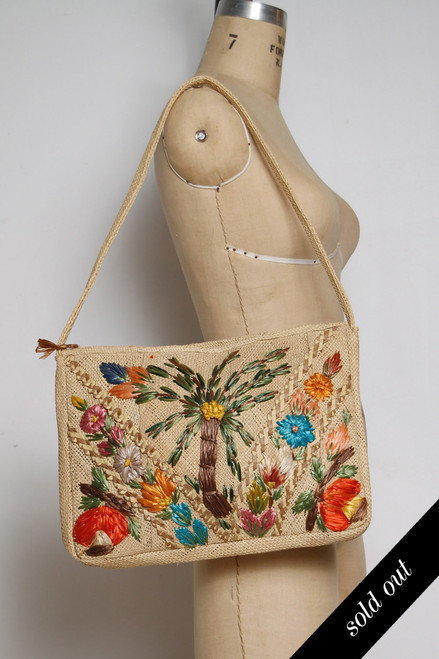 Quick view Sold out small embroidered bag cute vintage 70s Marheta floral embroidery vinyl handbag $34.00